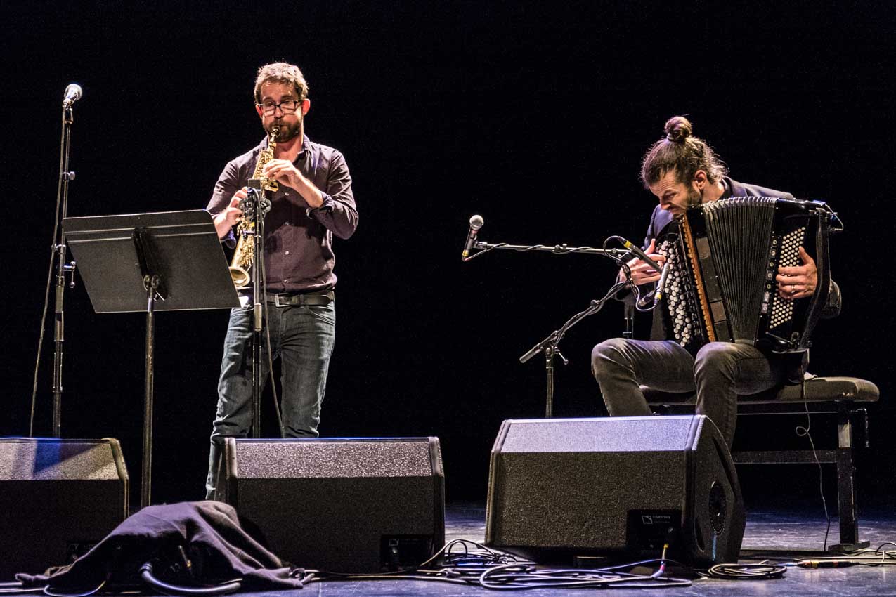 Michel Portal (clarinette, clarinette basse, saxophone soprano), Émile Parisien (saxophone soprano), Vincent Peirani (accordéon).